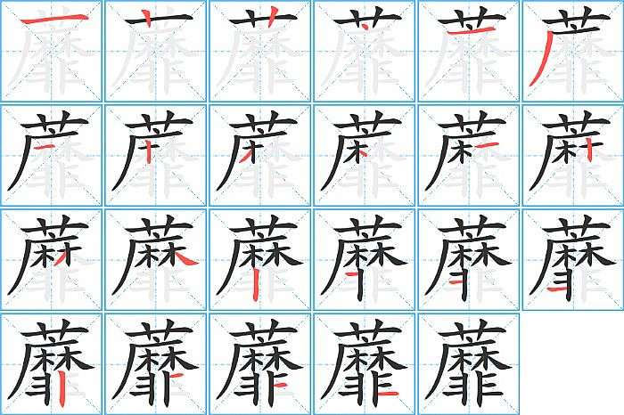 - 问:写"蘼"字第20笔是什么笔画?答:横【