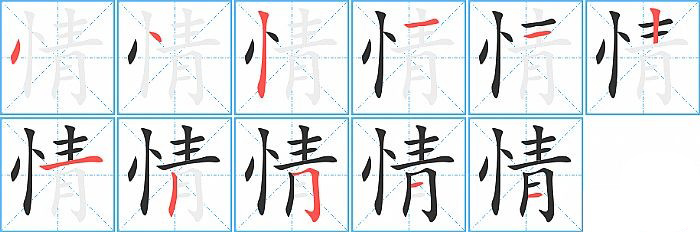 - 问:写"情"字第10笔是什么笔画?答:横【