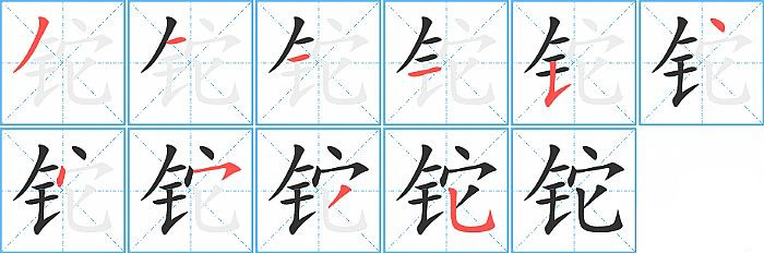- 问:写"铊"字第10笔是什么笔画?答:竖弯钩【