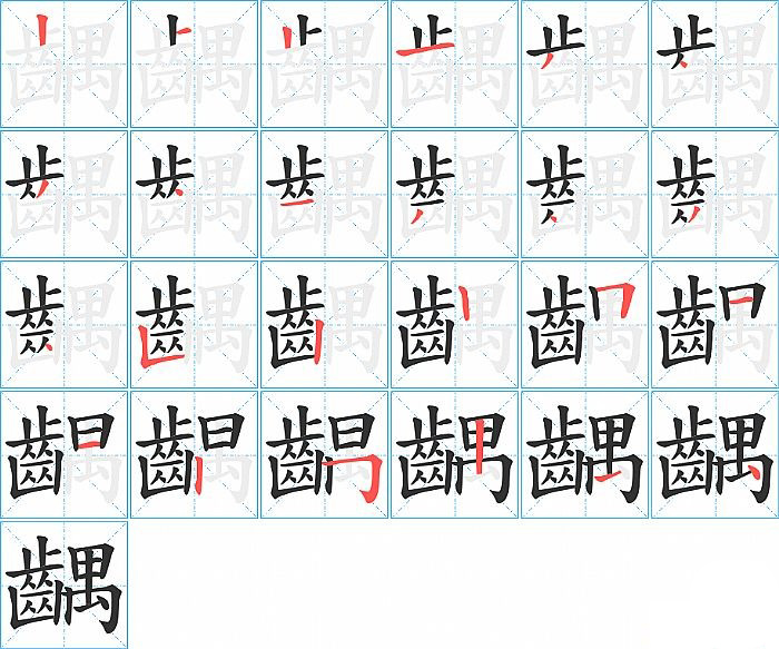 - 问:写"齵"字第19笔是什么笔画?答:横【