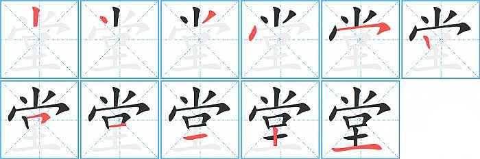 - 问:写"堂"字第11笔是什么笔画?答:横【