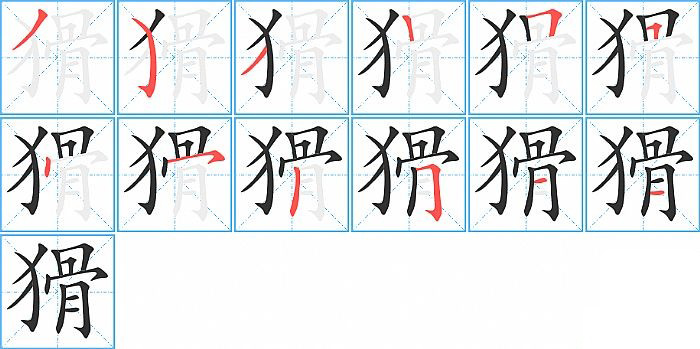 - 问:写"猾"字第12笔是什么笔画?答:横【