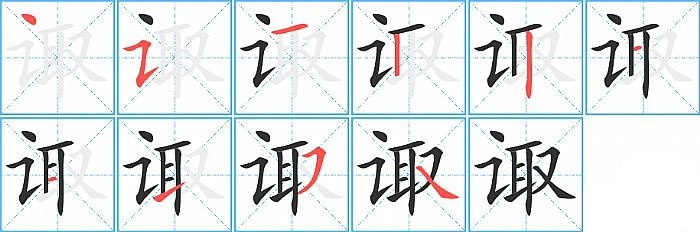 - 问:写"诹"字第10笔是什么笔画?答:捺【