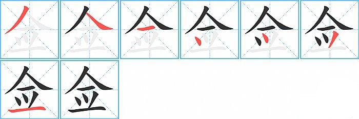 - 问:写"佥"字第6笔是什么笔画?答:撇【
