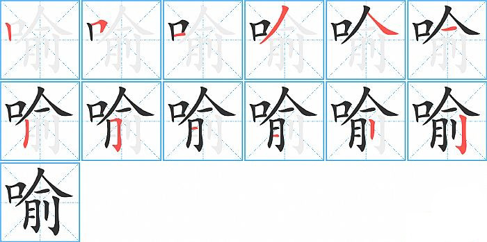 - 问:写"喻"字第12笔是什么笔画?答:竖钩【