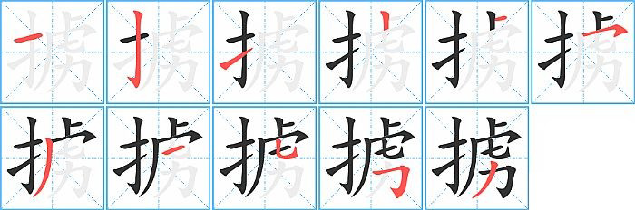 - 问:写"掳"字第10笔是什么笔画?答:横折钩【