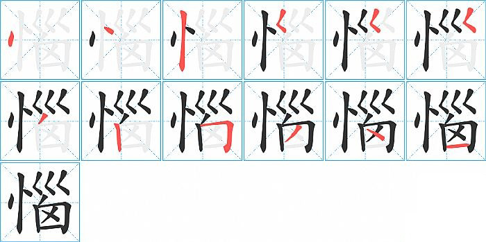 - 问:写"惱"字第12笔是什么笔画?答:横【
