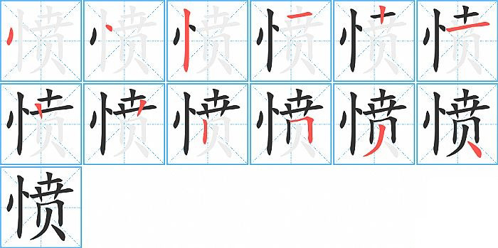 - 问:写"愤"字第11笔是什么笔画?答:撇【
