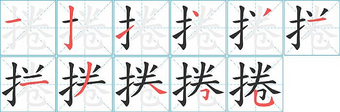 - 问:写"捲"字第10笔是什么笔画?答:横折钩【