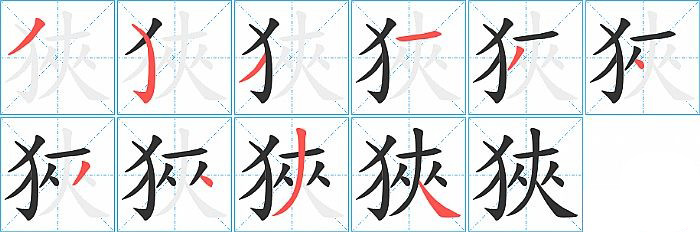 - 问:写"狹"字第10笔是什么笔画?答:捺【