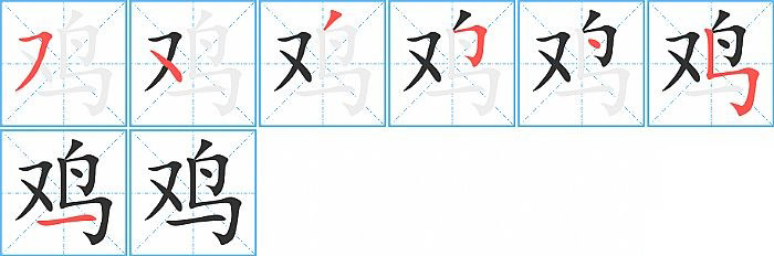 - 问:写"鸡"字第7笔是什么笔画?答:横【