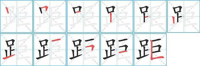 - 问:写"距"字第10笔是什么笔画?答:横【