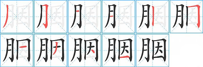 - 问:写"胭"字第10笔是什么笔画?答:横【
