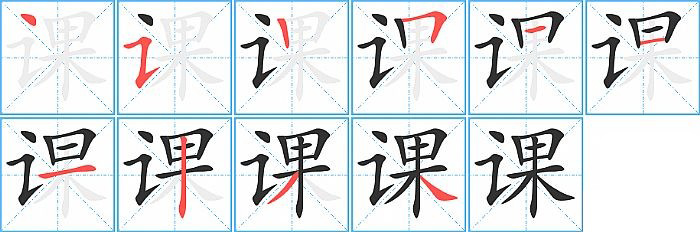 - 问:写"课"字第10笔是什么笔画?答:捺【