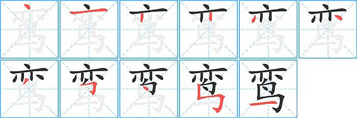 - 问:写"鸾"字第10笔是什么笔画?答:竖折折钩【