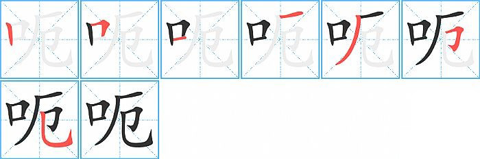 竖、横折、横、横、撇、横折钩、竖弯钩