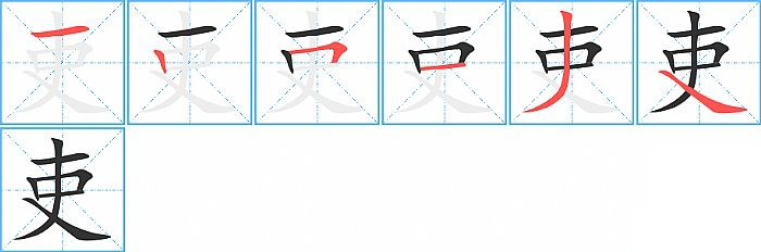 - 问:写"吏"字第5笔是什么笔画?答:撇【
