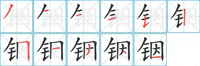 - 问:写"铟"字第8笔是什么笔画?答:横【