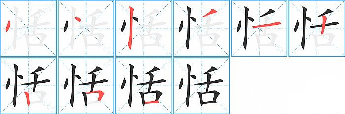- 问:写"恬"字第9笔是什么笔画?答:横【