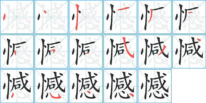 - 问:写"憾"字第14笔是什么笔画?答:斜钩【