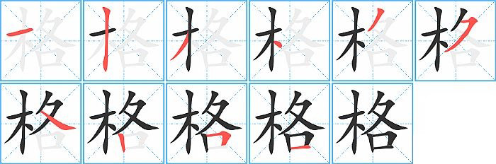 - 问:写"格"字第10笔是什么笔画?答:横【