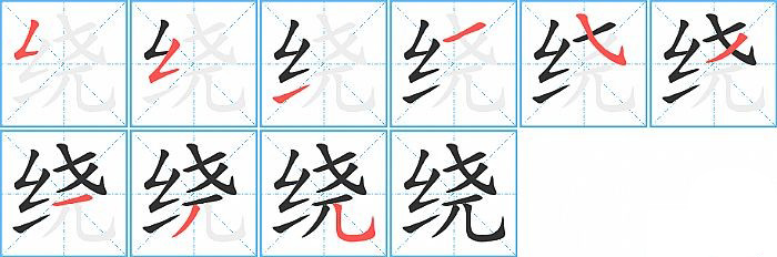 - 问:写"绕"字第7笔是什么笔画?答:横【