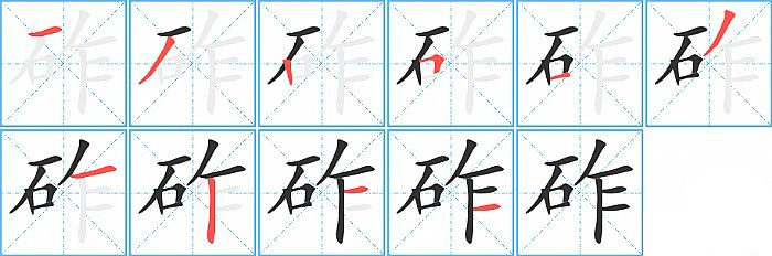 - 问:写"砟"字第10笔是什么笔画?答:横【