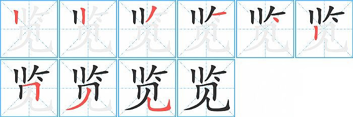 - 问:写"览"字第6笔是什么笔画?答:竖【
