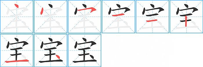 - 问:写"宝"字第7笔是什么笔画?答:横【