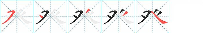 癶的笔画为5画, 笔顺为