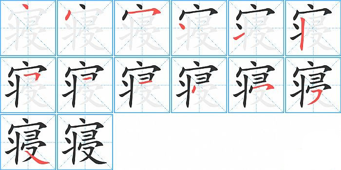 - 问:写"寝"字第13笔是什么笔画?答:捺【