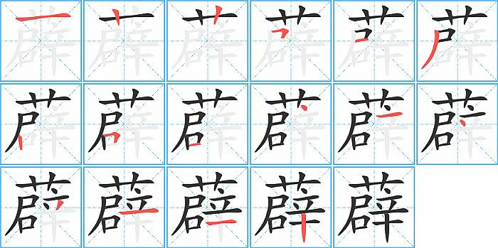 - 问:写"薜"字第14笔是什么笔画?答:横【