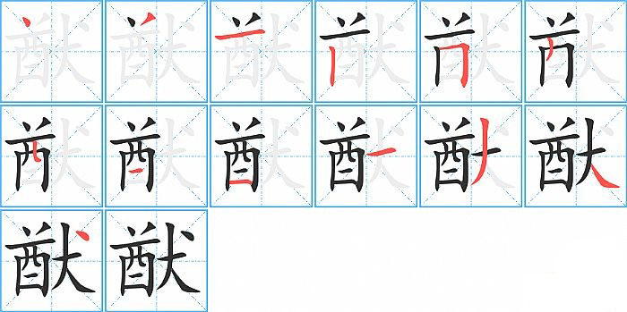 - 问:写"猷"字第13笔是什么笔画?答:点【