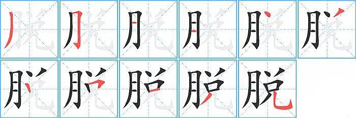 - 问:写"脱"字第10笔是什么笔画?答:撇【