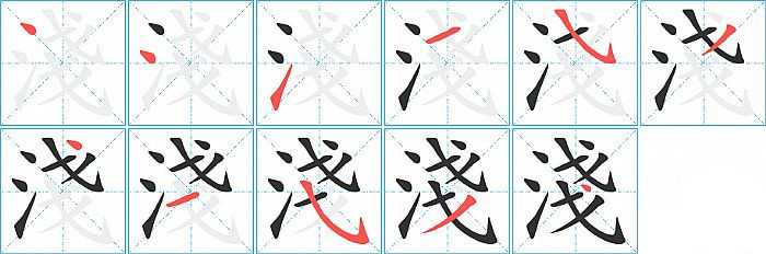 - 问:写"淺"字第10笔是什么笔画?答:撇【
