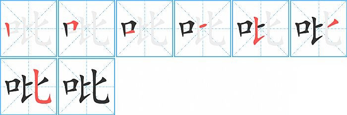 吡的笔画为7画, 笔顺为