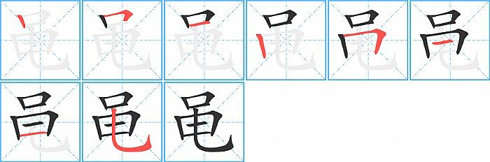 竖、横折、横、竖、横折、横、横、竖弯钩