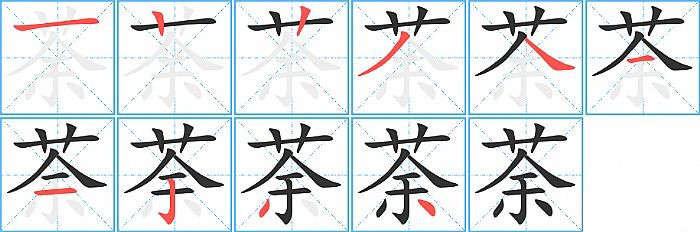- 问:写"荼"字第6笔是什么笔画?答:横【