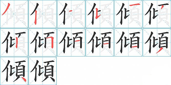 - 问:写"傾"字第12笔是什么笔画?答:撇【