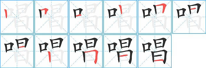 - 问:写"唱"字第11笔是什么笔画?答:横【