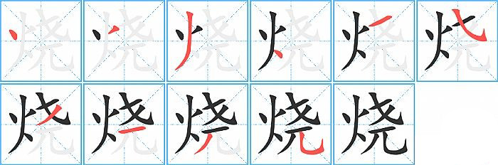 - 问:写"烧"字第10笔是什么笔画?答:竖弯钩【