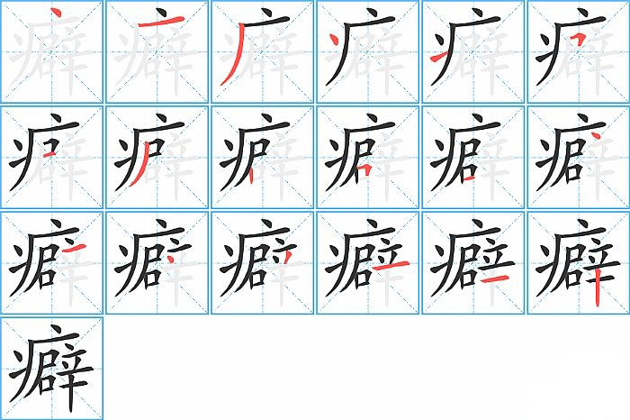 - 问:写"癖"字第17笔是什么笔画?答:横【