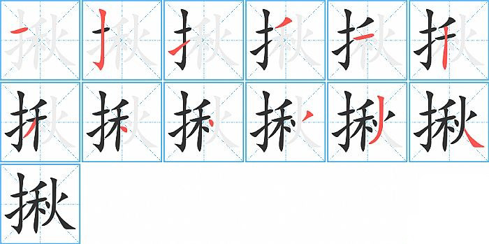 - 问:写"揪"字第11笔是什么笔画?答:撇【