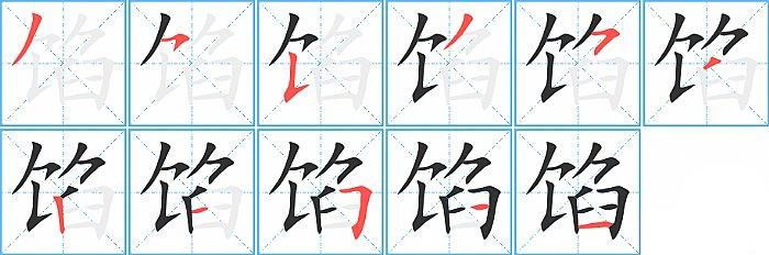 - 问:写"馅"字第10笔是什么笔画?答:横【