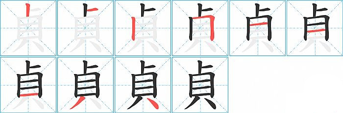 - 问:写"貞"字第8笔是什么笔画?答:撇【