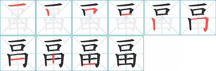 畐的笔画为9画, 笔顺为