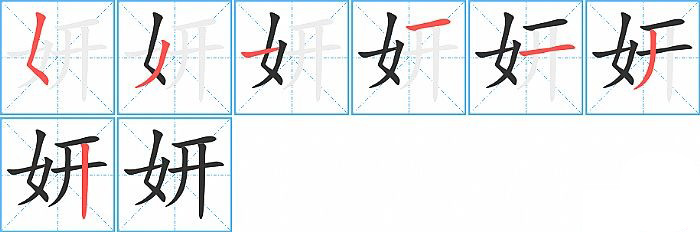 - 问:写"妍"字第7笔是什么笔画?答:竖【