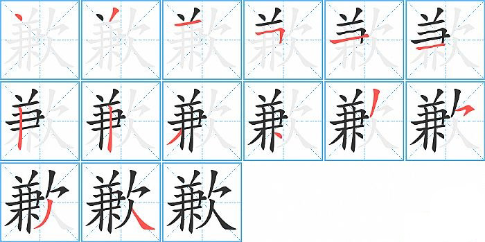 - 问:写"歉"字第13笔是什么笔画?答:撇【