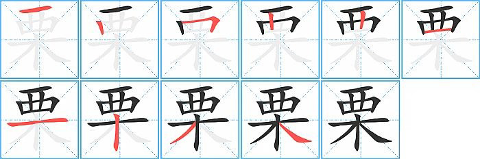 - 问:写"栗"字第9笔是什么笔画?答:撇【