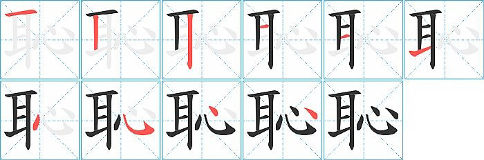 - 问:写"恥"字第8笔是什么笔画?答:斜钩【